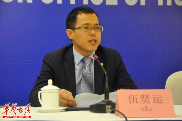 4月21日上午,湖南省委外宣办新闻发布处副处长伍贤运主持2014年湖南省知识产权保护状况新闻发布会