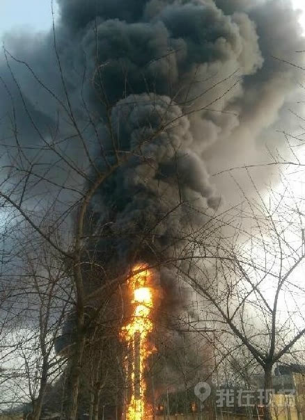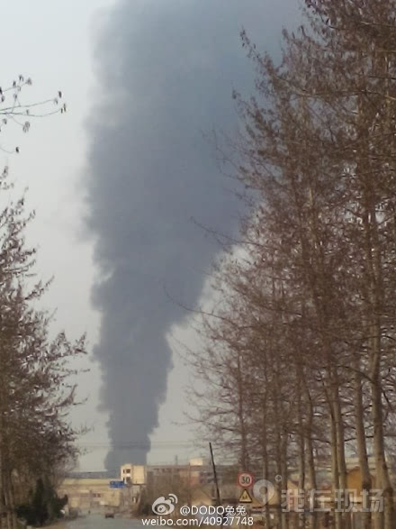 网友@DODO兔兔 从远处拍摄到的东北特钢火灾,浓烟直冲云霄。