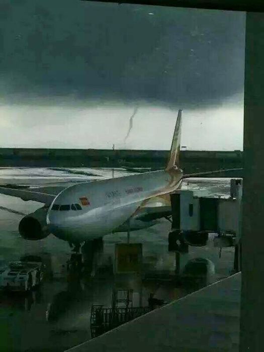 据报道,2015年5月11日下午,深圳市宝安机场周边惊现龙卷风。