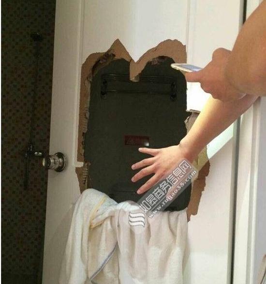 原本他没怎么在意,但当他们反复尝试了十几分钟后,起初觉得尴尬,后来就觉得危险了。情急之下,祝先生看了一下卫生间的门,他分析应该是复合门,门锁的手柄是旋转式的老式锁,锁是打不开的,他只能试一下能不能在门上凿一个洞逃出去,否则时间长了他们有可能窒息。卫生间里除了两只玻璃杯和牙膏、牙刷,没有任何工具,祝先生开始用脚使劲地踹门,反复蹬踹了十几下,门终于裂开了一道口子。
