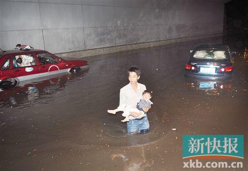 前晚,天河区珠吉路大淋岗工业区后山一处旧奶牛场的化粪池被大雨冲塌,粪便混着淤泥被雨水冲下来,淹没了20000多平方米的工业区,5间厂房惨遭吞没,损失惨重;同在前晚,持续的暴雨使两个地铁站也遭受汹涌的积水侵袭。地铁2号线白云公园站由于站外市政排水设施不畅,大量积水倒灌进站,站台成了“地下河”。