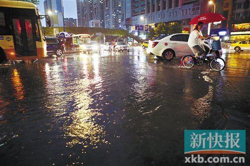 昨天,天河区中山大道西华景新城路口积水严重。 新快报记者 宁彪/摄