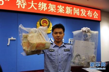 5月14日,广东省公安厅展示4·25特大绑架案缴获的部分赃款
