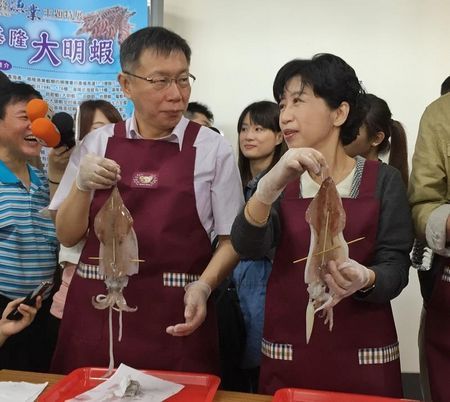 台北市长柯文哲(前左)与太太陈佩琪(前右)。台湾“中央社”档案照片