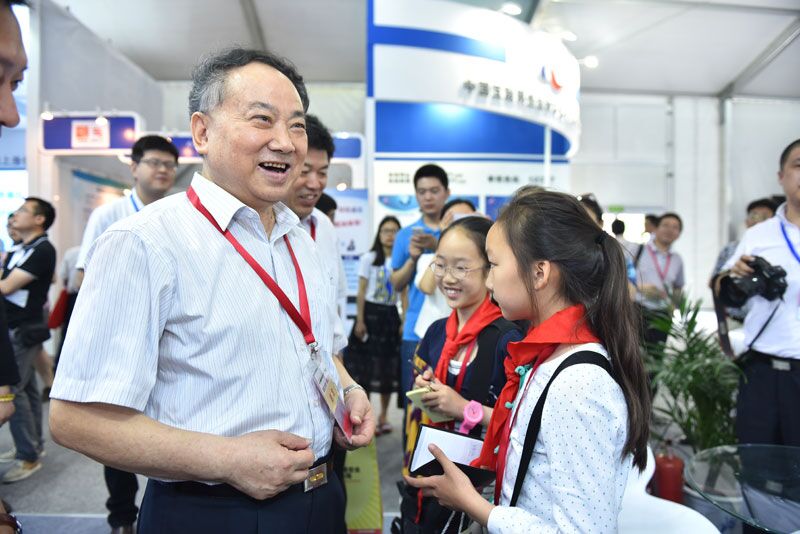 6月1日上午10时,为期三天的第二届国家网络安全宣传周公众体验展免费开放。在体验展现场,沈昌祥院士愉快地接受了两位小记者的采访,并与小记者共话网络安全和青少年责任。图片来源中国网信网