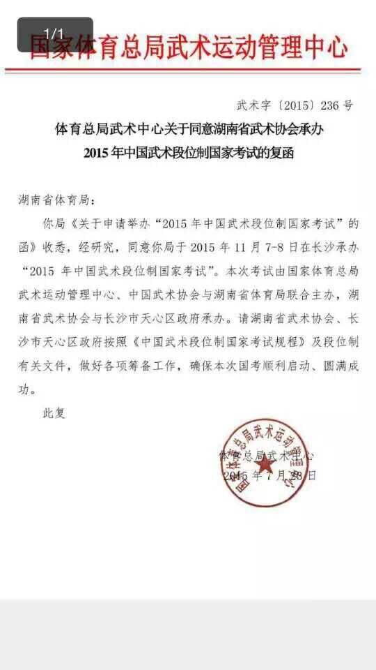 华声在线讯(记者 刘涛)7月28日,记者从湖南省武术协会获悉,我省已正式成功申办2015年的中国武术段位制国家考试,将于今年11月7日至8日在长沙举行。这将是第三届成规模的武术段位制“国考”,也是新中国成立以来湖南首次承办武术“国考”。本次武术预计将在8月底启动报名。