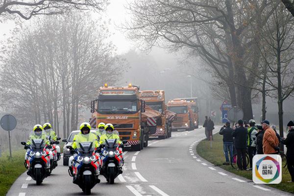 上图为装载马航MH17航班残骸的卡车抵达荷兰南部的希尔泽-赖恩空军基地的资料照片。
