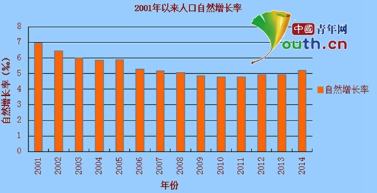 2001-2014年中国人口自然增长率 数据来源:国家统计局