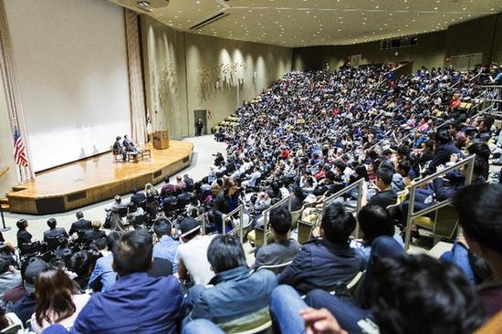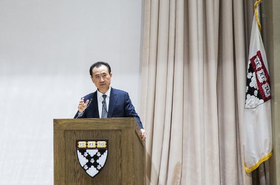 万达集团董事长王健林在美国哈佛大学进行演讲