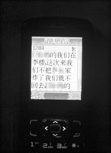 受害者家属收到的恐吓短信