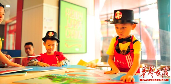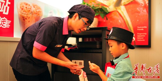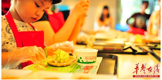何睿晨小朋友的妈妈陈女士正在用心听餐厅经理讲解“最佳赏味期”,为了保证健康饮食、重视顾客口感,肯德基所有食物都有自己的最佳赏味期,例如薯条在出锅后7分钟之内没有卖出去就必须废弃。“肯德基严格的管理、废弃制度让我挺安心的。”陈女士告诉记者,她之前在肯德基门店工作过几个月,熟知食品的制作流程,因此对肯德基的食品很放心。