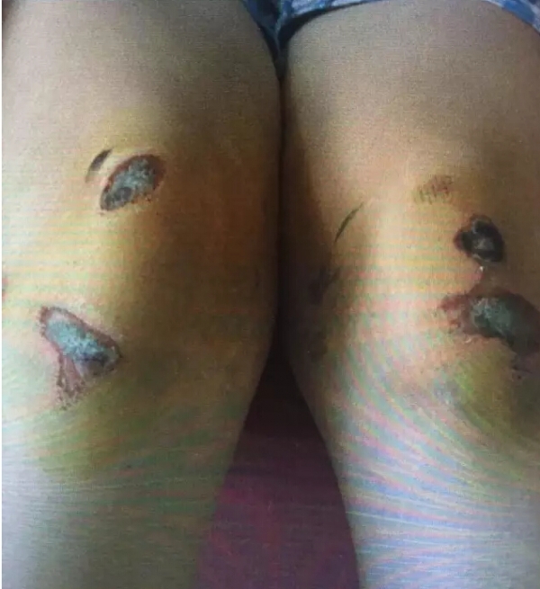 胳膊红肿不堪、双膝惨不忍睹、手上还有伤疤,这一个小姑娘咋能伤成这样?