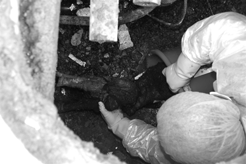 今年7月18日中午12点左右,这名维修工打开下水道井盖时,一阵恶臭扑鼻而来,探头往井下一看,下水道底部竟然散落着一堆白骨。维修工惊慌失措,赶忙报警。