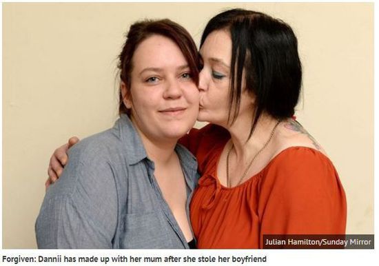 据台湾媒体东森新闻云报道,英国发生一起离奇的感情纠葛,21岁女子丹妮(Danni)和男友基尔(Anthony Key)已交往2年多,但男友却在短短数周突然爱上她的妈妈桑马斯(Marie Summers),两人不只上床发生关系,到后来还决定要步入礼堂,丹妮表示,血浓于水,她永远是我的母亲,我原谅他们。