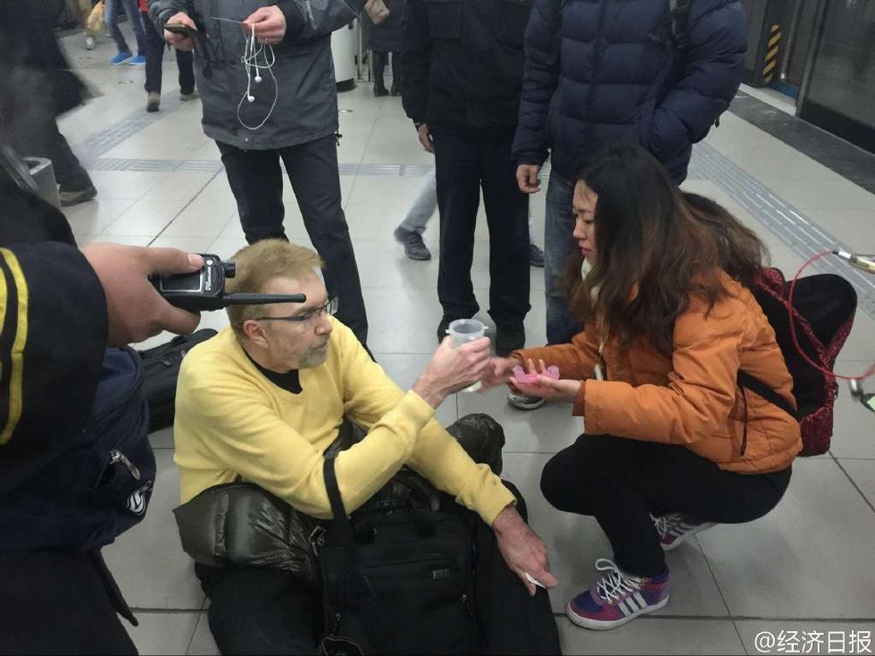 1月28日9点10分左右,一外国朋友在太阳宫站内晕倒,路人立刻过来搀扶,接连发生温暖画面:一女孩立刻拨打急救电话;一男孩脱下羽绒服为他披上;懂中医的阿姨为他按摩穴位;急救人员5分钟内赶到诊治。“我感觉好多了,谢谢!”外国朋友说。