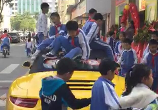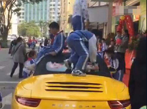 近日一则“熊孩子踩踏保时捷”的视频被疯传,视频中,一辆亮黄色车身的保时捷停放在马路边,被十几个小学生团团围住。