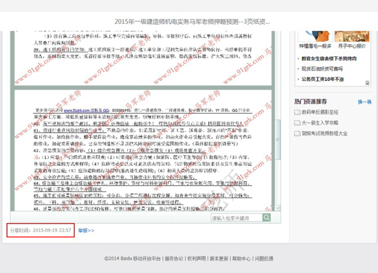 根据刘明提供的网盘链接,中国青年报记者搜索到一份名为“2015年一级建造师机电实务马军老师押题预测——3页纸资料”的PDF文件,页眉标有“www.”的网址。