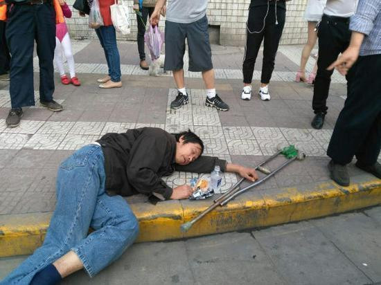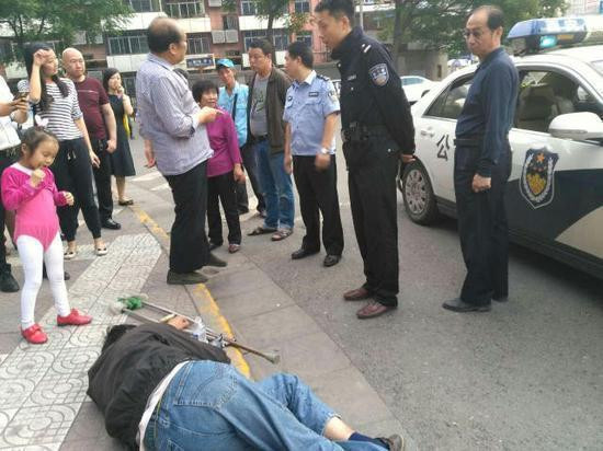 据出警民警说,这人在小寨地区已经多次这样了,120就出动好几次了,每次都是给他点费用回家,可能在利用大家的同情心。