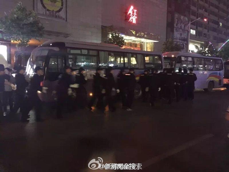 图片可见,现场调来了多辆大巴车,有大量群众聚集围观。 (来自:澎湃新闻)