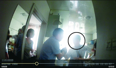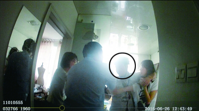 民警冲进房间时,犯罪嫌疑人(画圈处)正右手持刀,左手挟持女子