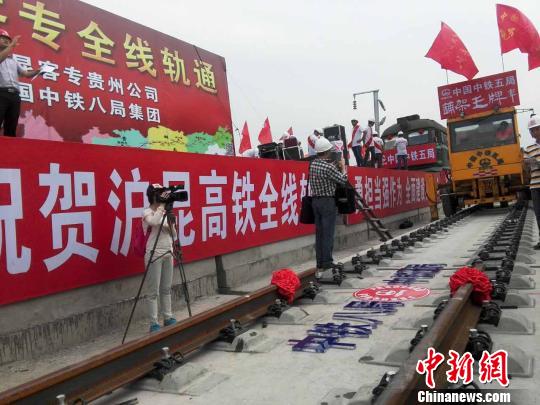 中新网贵阳6月16日电(记者 杨茜 通讯员郑珍荣)16日下午,沪昆高铁贵州西段全线完成铺轨施工,这标志着沪昆高铁西段全线贯通,贵阳至昆明只需2小时。