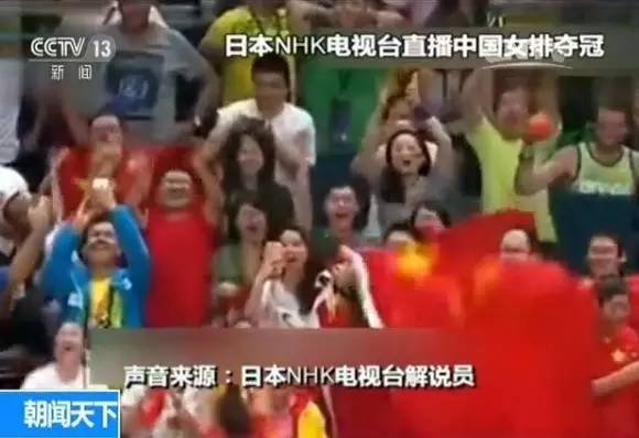 日本NHK电视台解说员:“这是决定胜负的一球!球被救起!冠军决定了!这是中国女排三届奥运会中首次获得冠军!里约奥运会女子排球金牌是属于中国的!中国选手们从一开始坚持到了最后!中国女排获得冠军可以说是实至名归!”