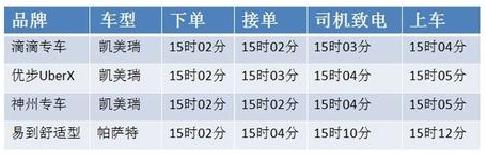 从4家网约车“出洞”效率来看,神州专车和滴滴专车速度最快。