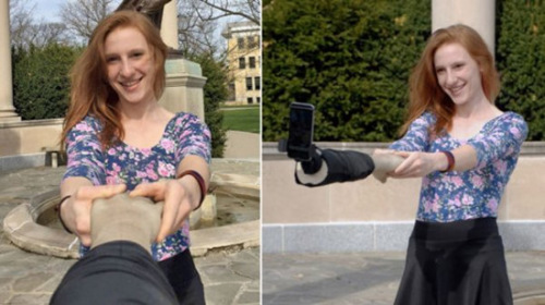“没那么简单,就能找到聊得来的伴”,七夕到了,还是没有找到另一半,只能眼巴巴地看别人秀恩爱?不要着急,美国2位艺术家设计出了一款造型新颖的自拍杆,他们将自拍杆制作成手臂的样子,拍照者可以用它拍出与情侣拉手、一起出游的照片。虽然解了燃眉之急,但这款“自拍手臂”的价格并不便宜,每件售价在6200美元(约合人民币3.8万元)。相比之下,还是赶快找到属于你的牛郎织女吧!