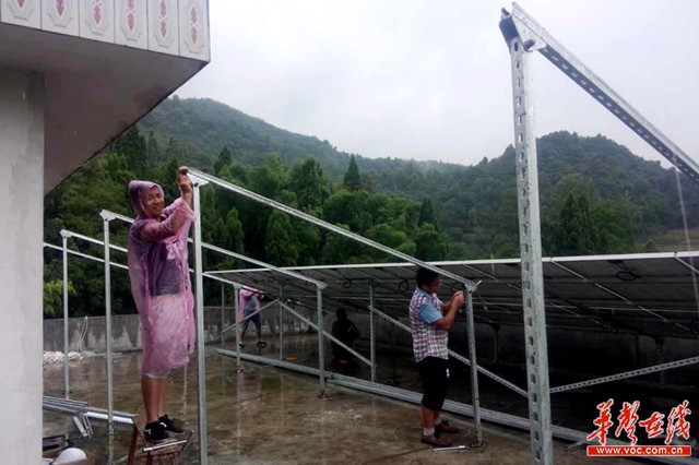 经过与当地扶贫办近半个月的沟通,7月底,成功拿下湾头桥镇“蓝家10千瓦分布式光伏发电扶贫”项目,并承诺一周之内完成所有安装工程。不巧的是,今年第4号“妮妲”8月2日登陆,受此影响,邵阳大部分地区出现降雨。