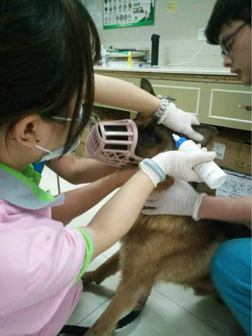丽娟将受伤的德牧犬紧急送到深圳一家兽医诊所,经过兽医检查,德牧犬的耳朵里全是脓血,“那些伤医生说是人为的,用铁棍等击打造成,此前王某平还向别人发了视频,视频里面他用脚狂踢德牧的生殖器,应该就是这一只。”目前德牧正在接受救治,情况不乐观。