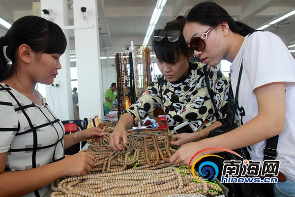 全国融媒体海南行记者走进文昌会文佛珠交易市场。 南海网记者陈望 摄