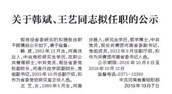 网上关于这名女团委书记的资料并不多。同样是河南日报,2012年9月28日刊发的《关于公开选拔省直副厅级领导干部拟任职人选的公示》的显示,时任共青团河南省委统战联络部部长的王艺出任共青团河南省委副书记。这表明,其通过公开选拔的方式进入副厅。