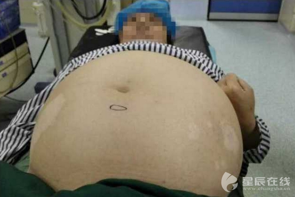 据悉,刘阿姨家住长沙市长沙县榔梨镇。她患有高血压、糖尿病等疾病,一直靠药物控制病情。2013年3月,刘阿姨因“脑溢血”导致左侧肢体偏瘫,行动不便。去年下半年开始,刘阿姨的腹部开始隆起,家人和她本人都以为是长期卧床、活动相对较少导致的肥胖,所以没太在意。日子一天天过去了,刘阿姨的肚子也越长越大,堪比足月孕妇,躺在床上连呼吸都很费力。家人带着刘阿姨到医院进行检查,医生发现刘阿姨的腹腔长了个巨大肿瘤,由于肿瘤极大,刘阿姨本身又合并多种慢性病,手术风险高,家人陪着刘阿姨辗转多家医院求医,医生均建议保守治疗。11月中旬,刘阿姨突然出现难以忍受的下腹胀痛,并伴有严重的呼吸困难,随即被紧急送到长沙市中心医院妇科门诊就诊。
