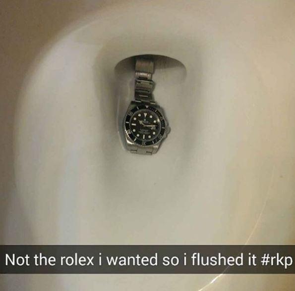 据报道,这些富有的孩子以英国和美国少年为主,也有些来自迪拜、新加坡、俄罗斯和尼日利亚。图为他们把一块劳力士手表冲进马桶。