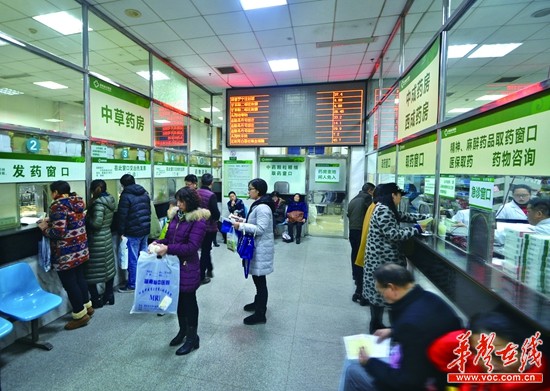 12月20日,长沙市蔡锷路一公立医院,市民在窗口领取药品。 记者 李健 摄