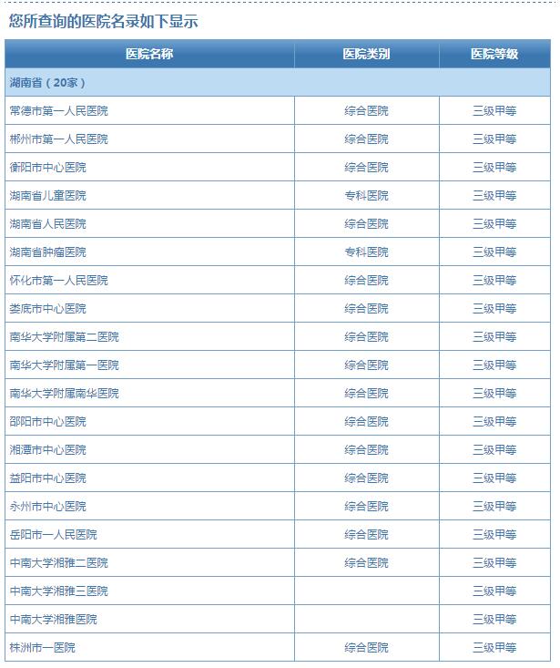根据国家卫计委网站收录的医院名录,截至2017年1月23日,湖南省三级甲等医院共显示有20家。