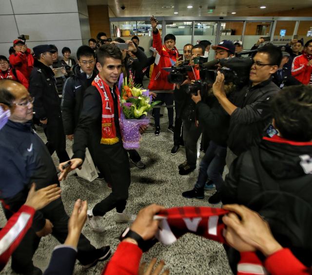 ↑2017年1月2日,巴西球员奥斯卡抵达上海浦东国际机场。2016年12月23日,中超上港俱乐部与英超切尔西俱乐部完成关于奥斯卡的转会协议。新华社记者凡军摄
