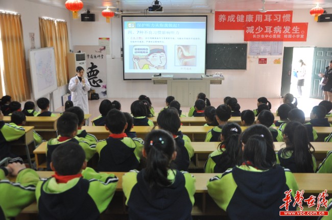 华声在线3月2日讯(记者 蔡奥 通讯员 秦璐)3月3日是全国爱耳日。2日上午,长沙市中心医院耳鼻咽喉头颈外科专家团队走进长沙市雨花亭街道桔园小学,给110名孩子上了一堂生动的健康教学课《认识耳朵,保护听力》,关注青少年的听力健康。