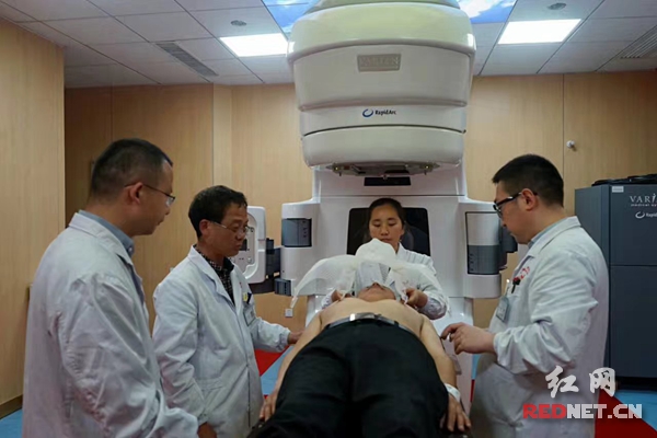 “2号加速器的开机每月可以增加放疗病人1700人\次,将显著缓解湖南省肿瘤医院放疗排队的问题。”刘湘国介绍,该设备在最大速度和保证质量的治疗肿瘤的同时,还可以将正常器官的放射性损伤降到最小,实施的放疗计划比静态调强更加优化,可以更好的保护患者的正常器官。