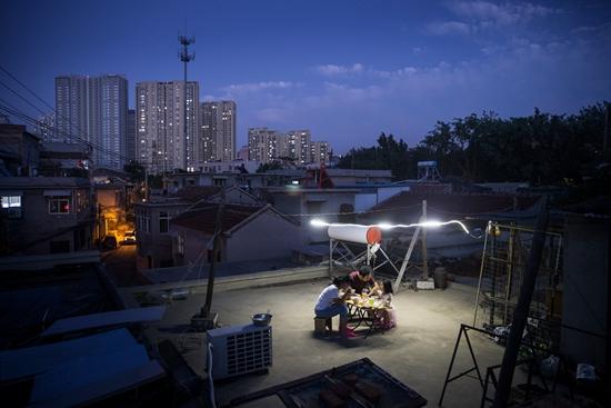 2016年6月24日,山东济南,王志宝一家在屋顶露台吃晚饭。