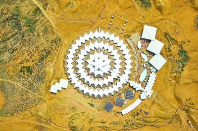 于是,沿着库布其沙漠的穿沙公路进入亿利资源沙漠生态循环产业园,便有了这“一边黄沙一边‘蓝海’”的奇特景观。
