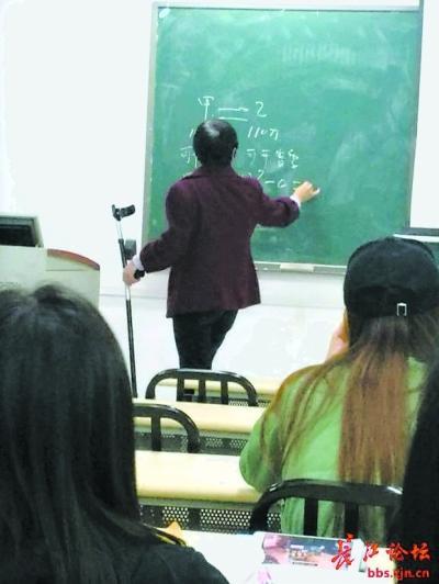 原标题:高校女教师骨折后拄拐杖上课 被称最敬业教师(图)