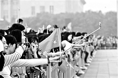 从1点半到升旗仪式开始,人们要等待超过5个半小时,10月北京的夜晚冷得刺骨,人们穿着厚厚的棉衣,裹着毛毯仍然会瑟瑟发抖,可没有人离开。