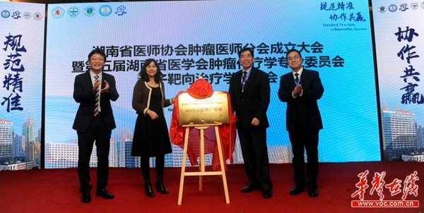 中国研究型医院学会精准医学与肿瘤MDT专业委员会副主任委员孙涛、湘雅二医院副院长黎志宏,肿瘤中心主任胡春宏、临床肿瘤教研室副主任刘先领等共同为基地揭牌。当天,来自省内外的专家团队,就肿瘤治疗的前沿与热点话题进行了学术讲座,多例精彩的肿瘤MDT病例报告和讨论点评。