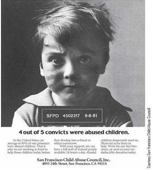美国旧金山儿童虐待理事会的宣传海报来说明这个问题对我们社会最严重的影响。