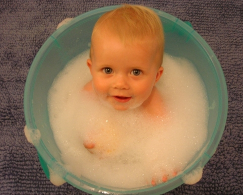 在宝宝洗澡的过程中,尽量通过盆浴的方式对其洗澡。在盆底可以放置毛巾,避免宝宝滑倒,并需要保持水平线在宝宝的腹部以上和肩部以下。