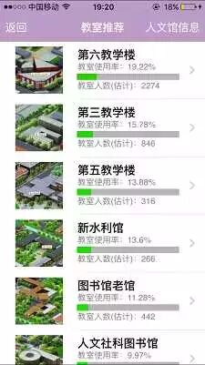 据知乎网友介绍,他们学校的某app有个黑科技,实时显示各教学楼人数!