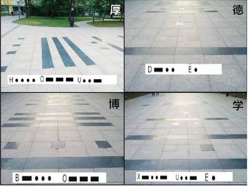 在北邮,有一段长达二三十米,宽两米左右的黑色地砖正是校训:“厚德博学,敬业乐群”的摩斯密码。