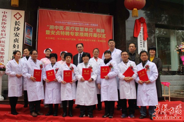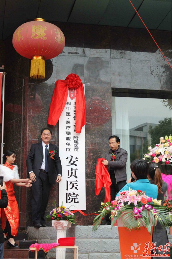 长沙安贞妇产医院游志雄董事与省中医附一杨声辉副院长共同揭牌。