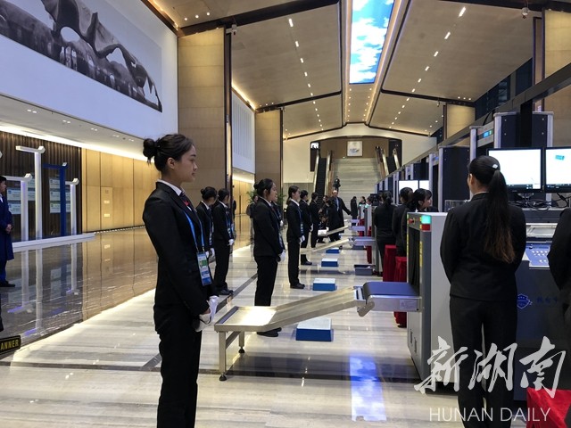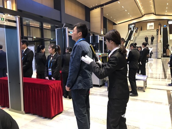 开幕式现场外,工作人员正在为参会嘉宾进行严格的安检。